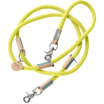 3-way adjustable: for maximum flexibility – ideal for walking, training and city tours. Comfortable and durable: soft rope with polyamide core meets robust cowhide leather - comfortable and durable. Fresh design: eye-catching colour combinations and functional leather straps with distinctive contrast stitching. Made in Germany: made with passion - quality that you see and feel. Size: adjustment options max. 200 cm. Diameter: 10 mm