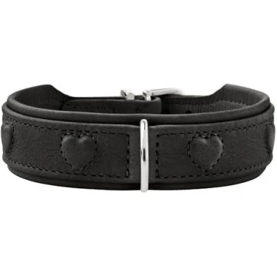 HUNTER SOHO X Love Dog Collar, Colour: Black, Cowhide Leather, Soft & Supple, Padded and Fur Friendly, Sewn in Hearts, Lightweight, for Small Dogs Puppies, Made Germany, Size: 32