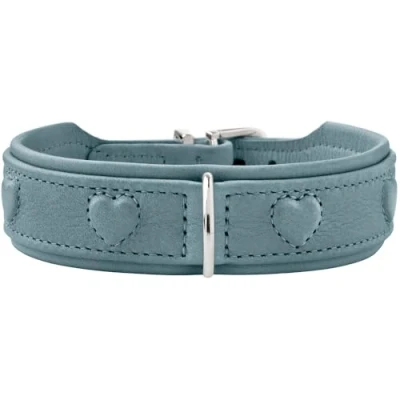 HUNTER SOHO X Love Dog Collar, Colour: Light Blue, Cowhide Leather, Soft & Supple, Padded and Fur Friendly, Sewn in Hearts, Lightweight, for Small Dogs Puppies, Made Germany, Size: 32