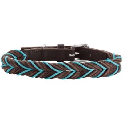 HUNTER Solid Education Cord Dog Collar Dark Brown/Turquoise Robust Cowhide Leather Hand Braided Made in Germany Size 50