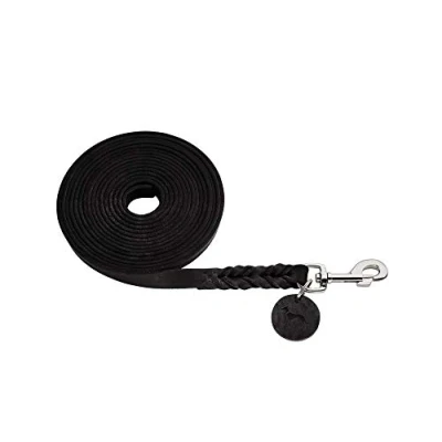 Intricate, hand braided,rounded edges and comfortable soft leather Woven bolt hooks. Particlarly suited for dog sports and training 11mm width, 500cm length