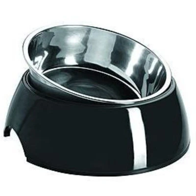 Bowl for Dog and Cat in black melamine, 350 ml. Shock and scratch-resistant, it is hygienic and easy to clean thanks to its removable stainless steel bowl. Ideal for indoor use, it features non-slip feet for added stability.