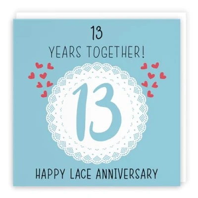 Hunts England ⭐️ - 13th Wedding Anniversary Card - Lace Anniversary - Iconic Collection - For Him, Her, Couples, etc. CARD MEASURES 148 x 148 mm 🌟 - The greetings card is printed on medium-weight paper stock. The card comes with an envelope which measures 155 x 155 mm in size LEFT BLANK INSIDE 💫 - The greetings card is left blank inside for your own special message RESPONSIBLY SOURCED PAPER STOCK 🌳 - The greetings card is printed on responsibly sourced paper stock giving you peace of mind that the card has been made with the sustainability of our precious forests in mind BY HUNTS ENGLAND 🇬🇧 - This card is by the independent publisher Hunts England who specialise in greetings cards and gift wrap
