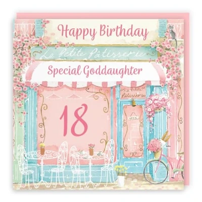 Hunts England 18th Goddaughter La Petite Patisserie Birthday Card Charming Pink Bakery, Pretty French Cafe Female Floral Design Age 18 Happy Milo's Gallery