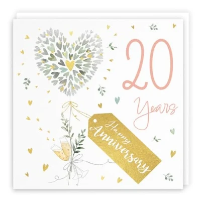 Hunts England 20th Anniversary Card 20 Years Contemporary Hearts Gold Foil Luxury Wedding For Couples, Partner, Husband, Wife, etc. Milo's Gallery