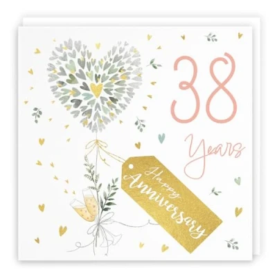 38th Anniversary Card - 38 Years - Contemporary Hearts - Gold Foil - 38th Wedding Anniversary Card For Couples, Partner, Husband, Wife, etc. CARD MEASURES 148 x 148 mm - The contemporary gold foiled anniversary card is printed on medium-weight paper stock. The card also comes with a white envelope which measures 155 x 155 mm in size PRINTED MESSAGE INSIDE - The greetings card has a message printed inside it which makes your card even more special whilst still leaving you plenty of room to write your own message. Please see the inside image of the card to see the printed message RESPONSIBLY SOURCED PAPER STOCK - The greetings card is printed on responsibly sourced paper stock giving you peace of mind that the card has been made with the sustainability of our precious forests in mind BY HUNTS ENGLAND - This anniversary card is part of our Milo's Gallery Collection and is printed in the United Kingdom