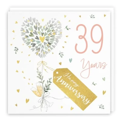 39th Anniversary Card - 39 Years - Contemporary Hearts - Gold Foil - 39th Wedding Anniversary Card For Couples, Partner, Husband, Wife, etc. CARD MEASURES 148 x 148 mm - The contemporary gold foiled anniversary card is printed on medium-weight paper stock. The card also comes with a white envelope which measures 155 x 155 mm in size PRINTED MESSAGE INSIDE - The greetings card has a message printed inside it which makes your card even more special whilst still leaving you plenty of room to write your own message. Please see the inside image of the card to see the printed message RESPONSIBLY SOURCED PAPER STOCK - The greetings card is printed on responsibly sourced paper stock giving you peace of mind that the card has been made with the sustainability of our precious forests in mind BY HUNTS ENGLAND - This anniversary card is part of our Milo's Gallery Collection and is printed in the United Kingdom