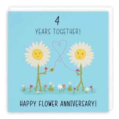 Hunts England ⭐️ - 4th Wedding Anniversary Card - Flower Anniversary - Iconic Collection - Fun Cute Card - For Him, Her, Couples CARD MEASURES 148 x 148 mm 🌟 - The greetings card is printed on medium-weight paper stock. The card comes with an envelope which measures 155 x 155 mm in size LEFT BLANK INSIDE 💫 - The greetings card is left blank inside for your own special message RESPONSIBLY SOURCED PAPER STOCK 🌳 - The greetings card is printed on responsibly sourced paper stock giving you peace of mind that the card has been made with the sustainability of our precious forests in mind BY HUNTS ENGLAND 🇬🇧 - This card is by the independent publisher Hunts England who specialise in greetings cards and gift wrap