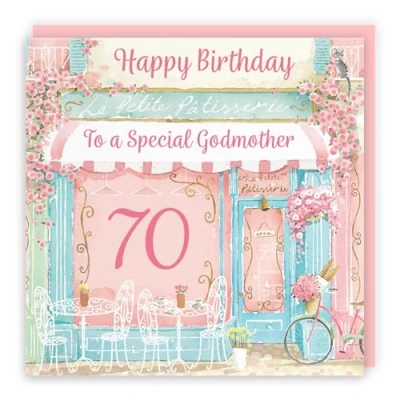 Hunts England 70th Godmother La Petite Patisserie Birthday Card Charming Pink Bakery, Pretty French Cafe Female Floral Design Age 70 Happy Milo's Gallery
