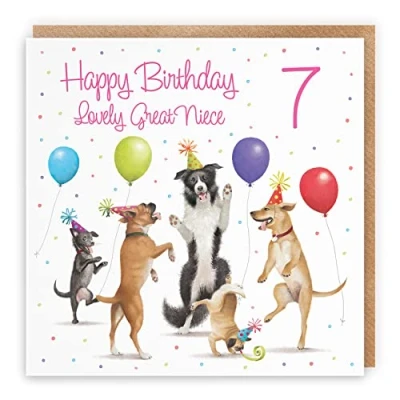 Hunts England 7th Great Niece Birthday Card Dancing Dogs Happy Lovely Age 7 Funny Girl's For Milo's Gallery Seven