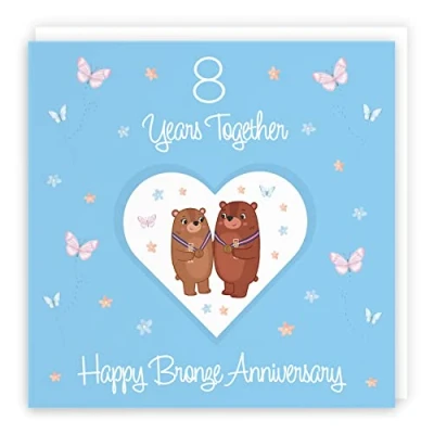 Hunts England ⭐️ - 8th Anniversary Card For Him Or Her - 8 Years - Bronze Anniversary - Romantic Meadows Collection - Eighth Anniversary Card For Couples, Boyfriend, Girlfriend, Husband, Wife, etc. CARD MEASURES 148 x 148 mm 🌟 - The contemporary anniversary card is printed on medium-weight paper stock. The card also comes with a white envelope which measures 155 x 155 mm in size PRINTED MESSAGE INSIDE 💫 - The greetings card has a message printed inside it which makes your card even more special whilst still leaving you plenty of room to write your own message. Please see the inside image of the card to see the printed message RESPONSIBLY SOURCED PAPER STOCK 🌳 - The greetings card is printed on responsibly sourced paper stock giving you peace of mind that the card has been made with the sustainability of our precious forests in mind BY HUNTS ENGLAND 🇬🇧 - This anniversary card is part of our Romantic Meadows Collection
