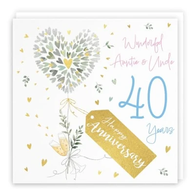 Hunts England Auntie And Uncle 40th Anniversary Card 40 Years Contemporary Hearts Gold Foil Luxury Wedding For Milo's Gallery
