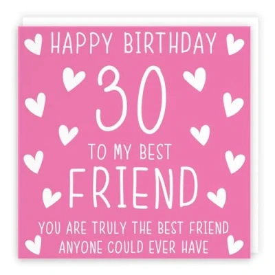 Hunts England ⭐️ - Best Friend 30th Birthday Card - Happy Birthday - 30 - To My Best Friend - You Are Truly The Best Friend Anyone Could Ever Have - Iconic Collection CARD MEASURES 148 x 148 mm 🌟 - The greetings card is printed on premium-quality paper stock giving it a thick and luxurious feel. The card comes with a premium-quality envelope which measures 155 x 155 mm in size LEFT BLANK INSIDE 💫 - The greetings card is left blank inside for your own special message RESPONSIBLY SOURCED PAPER STOCK 🌳 - The greetings card is printed on responsibly sourced paper stock giving you peace of mind that the card has been made with the sustainability of our precious forests in mind BY HUNTS ENGLAND 🇬🇧 - This card is by the independent publisher Hunts England who specialise in luxury greetings cards and gift wrap
