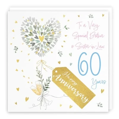 Hunts England Brother And Sister In Law 60th Anniversary Card 60 Years Contemporary Hearts Gold Foil Luxury Wedding For Milo's Gallery
