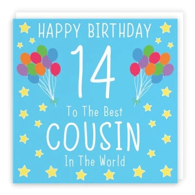 Hunts England ⭐️ - Cousin 14th Male Blue Birthday Card - Happy Birthday - 14 - To The Best Cousin In The World - Iconic Collection - Fun Colourful Card CARD MEASURES 148 x 148 mm 🌟 - The greetings card is printed on medium-weight paper stock. The card comes with an envelope which measures 155 x 155 mm in size LEFT BLANK INSIDE 💫 - The greetings card is left blank inside for your own special message RESPONSIBLY SOURCED PAPER STOCK 🌳 - The greetings card is printed on responsibly sourced paper stock giving you peace of mind that the card has been made with the sustainability of our precious forests in mind BY HUNTS ENGLAND 🇬🇧 - This card is by the independent publisher Hunts England who specialise in greetings cards and gift wrap