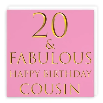 Hunts England ⭐️ - Cousin 20th Female Birthday Card - 20 & Fabulous - Happy Birthday Cousin - Still Totally Fabulous Collection (please note that the gold colour is printed effect, it is not foil) - Fun Female Card CARD MEASURES 148 x 148 mm 🌟 - The greetings card is printed on medium-weight paper stock. The card comes with an envelope which measures 155 x 155 mm in size LEFT BLANK INSIDE 💫 - The greetings card is left blank inside for your own special message RESPONSIBLY SOURCED PAPER STOCK 🌳 - The greetings card is printed on responsibly sourced paper stock giving you peace of mind that the card has been made with the sustainability of our precious forests in mind BY HUNTS ENGLAND 🇬🇧 - This card is by the independent publisher Hunts England who specialise in greetings cards and gift wrap