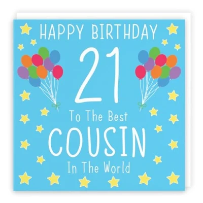 Hunts England ⭐️ - Cousin 21st Male Blue Birthday Card - Happy Birthday - 21 - To The Best Cousin In The World - Iconic Collection - Fun Colourful Card CARD MEASURES 148 x 148 mm 🌟 - The greetings card is printed on medium-weight paper stock. The card comes with an envelope which measures 155 x 155 mm in size LEFT BLANK INSIDE 💫 - The greetings card is left blank inside for your own special message RESPONSIBLY SOURCED PAPER STOCK 🌳 - The greetings card is printed on responsibly sourced paper stock giving you peace of mind that the card has been made with the sustainability of our precious forests in mind BY HUNTS ENGLAND 🇬🇧 - This card is by the independent publisher Hunts England who specialise in greetings cards and gift wrap