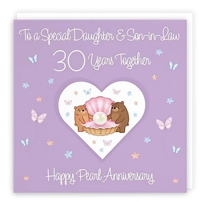 Hunts England ⭐️ - Daughter & Son-in-Law 30th Anniversary Card - 30 Years - Pearl Anniversary - Romantic Meadows Collection - 30th Anniversary Card For Daughter And Son-in-Law CARD MEASURES 148 x 148 mm 🌟 - The contemporary anniversary card is printed on medium-weight paper stock. The card also comes with a white envelope which measures 155 x 155 mm in size PRINTED MESSAGE INSIDE 💫 - The greetings card has a message printed inside it which makes your card even more special whilst still leaving you plenty of room to write your own message. Please see the inside image of the card to see the printed message RESPONSIBLY SOURCED PAPER STOCK 🌳 - The greetings card is printed on responsibly sourced paper stock giving you peace of mind that the card has been made with the sustainability of our precious forests in mind BY HUNTS ENGLAND 🇬🇧 - This anniversary card is part of our Romantic Meadows Collection