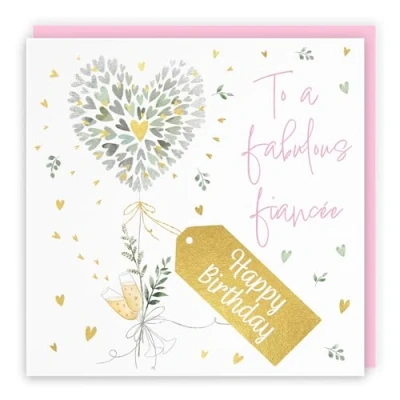 Hunts England Fiancée Contemporary Hearts Pretty Birthday Card Luxury Gold Foil Milo's Gallery Champagne, Female Fabulous For Fiancee Pink Envelope