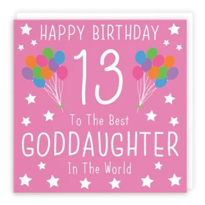 Hunts England ⭐️ - Goddaughter 13th Birthday Card - Happy Birthday - 13 - To The Best Goddaughter In The World - Iconic Collection - Happy Fun Colourful Card CARD MEASURES 148 x 148 mm 🌟 - The greetings card is printed on medium-weight paper stock. The card comes with an envelope which measures 155 x 155 mm in size LEFT BLANK INSIDE 💫 - The greetings card is left blank inside for your own special message RESPONSIBLY SOURCED PAPER STOCK 🌳 - The greetings card is printed on responsibly sourced paper stock giving you peace of mind that the card has been made with the sustainability of our precious forests in mind BY HUNTS ENGLAND 🇬🇧 - This card is by the independent publisher Hunts England who specialise in greetings cards and gift wrap