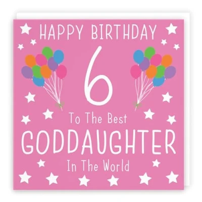 Hunts England ⭐️ - Goddaughter 6th Birthday Card - Happy Birthday - 6 - To The Best Goddaughter In The World - Iconic Collection - Fun Colourful Card CARD MEASURES 148 x 148 mm 🌟 - The greetings card is printed on medium-weight paper stock. The card comes with an envelope which measures 155 x 155 mm in size LEFT BLANK INSIDE 💫 - The greetings card is left blank inside for your own special message RESPONSIBLY SOURCED PAPER STOCK 🌳 - The greetings card is printed on responsibly sourced paper stock giving you peace of mind that the card has been made with the sustainability of our precious forests in mind BY HUNTS ENGLAND 🇬🇧 - This card is by the independent publisher Hunts England who specialise in greetings cards and gift wrap