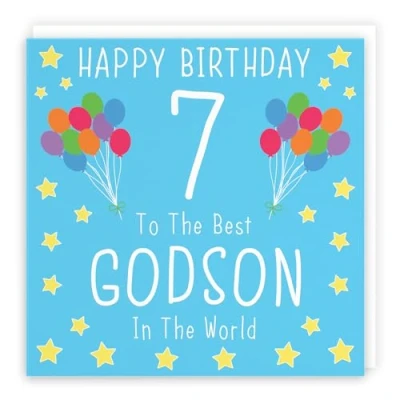 Hunts England ⭐️ - Godson 7th Birthday Card - Happy Birthday - 7 - To The Best Godson In The World - Iconic Collection - Fun Colourful Card CARD MEASURES 148 x 148 mm 🌟 - The greetings card is printed on medium-weight paper stock. The card comes with an envelope which measures 155 x 155 mm in size LEFT BLANK INSIDE 💫 - The greetings card is left blank inside for your own special message RESPONSIBLY SOURCED PAPER STOCK 🌳 - The greetings card is printed on responsibly sourced paper stock giving you peace of mind that the card has been made with the sustainability of our precious forests in mind BY HUNTS ENGLAND 🇬🇧 - This card is by the independent publisher Hunts England who specialise in greetings cards and gift wrap