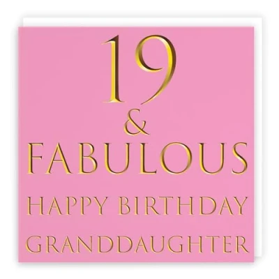 Hunts England ⭐️ - Granddaughter 19th Birthday Card - 19 & Fabulous - Happy Birthday Granddaughter - Still Totally Fabulous Collection (please note that the gold colour is printed effect, it is not foil) - Fun Female Card CARD MEASURES 148 x 148 mm 🌟 - The greetings card is printed on medium-weight paper stock. The card comes with an envelope which measures 155 x 155 mm in size LEFT BLANK INSIDE 💫 - The greetings card is left blank inside for your own special message RESPONSIBLY SOURCED PAPER STOCK 🌳 - The greetings card is printed on responsibly sourced paper stock giving you peace of mind that the card has been made with the sustainability of our precious forests in mind BY HUNTS ENGLAND 🇬🇧 - This card is by the independent publisher Hunts England who specialise in greetings cards and gift wrap