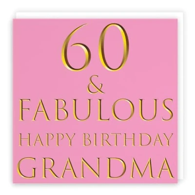 Hunts England ⭐️ - Grandma 60th Birthday Card - 60 & Fabulous - Happy Birthday Grandma - Still Totally Fabulous Collection (please note that the gold colour is printed effect, it is not foil) - Fun Female Card CARD MEASURES 148 x 148 mm 🌟 - The greetings card is printed on medium-weight paper stock. The card comes with an envelope which measures 155 x 155 mm in size LEFT BLANK INSIDE 💫 - The greetings card is left blank inside for your own special message RESPONSIBLY SOURCED PAPER STOCK 🌳 - The greetings card is printed on responsibly sourced paper stock giving you peace of mind that the card has been made with the sustainability of our precious forests in mind BY HUNTS ENGLAND 🇬🇧 - This card is by the independent publisher Hunts England who specialise in greetings cards and gift wrap