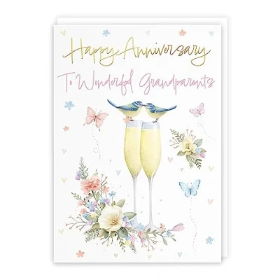 Hunts England Grandparents Anniversary Card A5 Size Champagne Flutes Gold Foil Luxury For Milo's Gallery