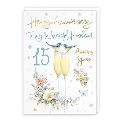 Hunts England Husband 15th Anniversary Card A5 Size Champagne Flutes Gold Foil Luxury For Fifteen Years Milo's Gallery