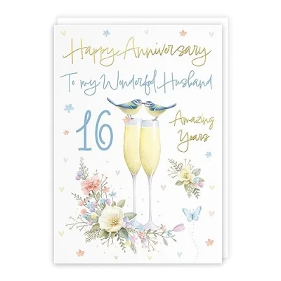 Hunts England Husband 16th Anniversary Card A5 Size Champagne Flutes Gold Foil Luxury For Sixteen Years Milo's Gallery