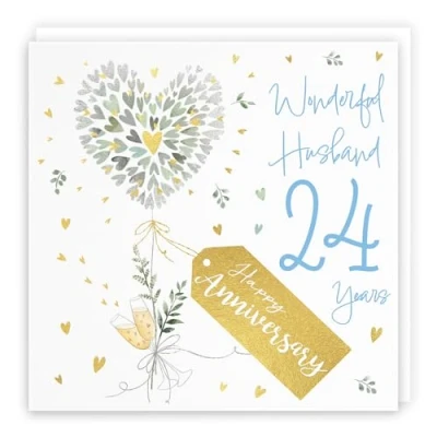 Hunts England Husband 24th Anniversary Card 24 Years Contemporary Hearts Gold Foil Luxury Wedding For Happy Milo's Gallery