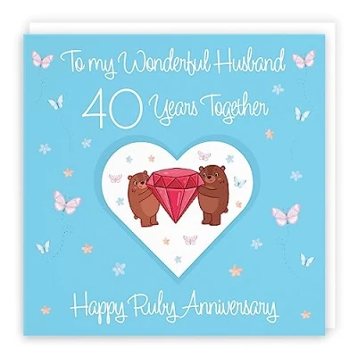 Hunts England ⭐️ - Husband 40th Anniversary Card - 40 Years - Ruby Anniversary - Romantic Meadows Collection - 40th Anniversary Card For Husband CARD MEASURES 148 x 148 mm 🌟 - The contemporary anniversary card is printed on medium-weight paper stock. The card also comes with a white envelope which measures 155 x 155 mm in size PRINTED MESSAGE INSIDE 💫 - The greetings card has a message printed inside it which makes your card even more special whilst still leaving you plenty of room to write your own message. Please see the inside image of the card to see the printed message RESPONSIBLY SOURCED PAPER STOCK 🌳 - The greetings card is printed on responsibly sourced paper stock giving you peace of mind that the card has been made with the sustainability of our precious forests in mind BY HUNTS ENGLAND 🇬🇧 - This anniversary card is part of our Romantic Meadows Collection