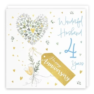 Hunts England Husband 4th Anniversary Card 4 Years Contemporary Hearts Gold Foil Luxury Wedding For Happy Milo's Gallery