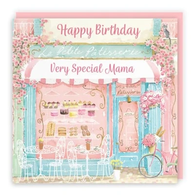 Hunts England La Petite Patisserie Mama Birthday Card For Her Charming Pink Bakery, Pretty French Cafe Female Floral Design Happy Women Milo's Gallery