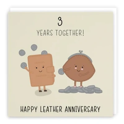 Hunts England ⭐️ - Large 3rd Wedding Anniversary Card - Large Size - Leather Anniversary - Iconic Collection - Large - 210 x 210 mm - 3 Years Cute Anniversary Card For Him, Her, Couples, etc. LARGE CARD MEASURES 210 x 210 mm 🌟 - The greetings card is printed on medium-weight paper stock. The card comes with an envelope LEFT BLANK INSIDE 💫 - The greetings card is left blank inside for your own special message RESPONSIBLY SOURCED PAPER STOCK 🌳 - The greetings card is printed on responsibly sourced paper stock giving you peace of mind that the card has been made with the sustainability of our precious forests in mind BY HUNTS ENGLAND 🇬🇧 - This large card is by the independent publisher Hunts England who specialise in greetings cards and gift wrap
