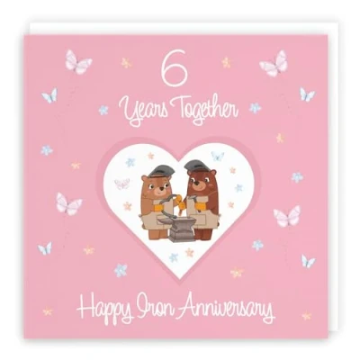 Hunts England Large 6th Anniversary Card 6 Years Iron Romantic Meadows Fun Sixth For Couples, Boyfriend, Girlfriend, Husband, Wife, etc. 210 x mm