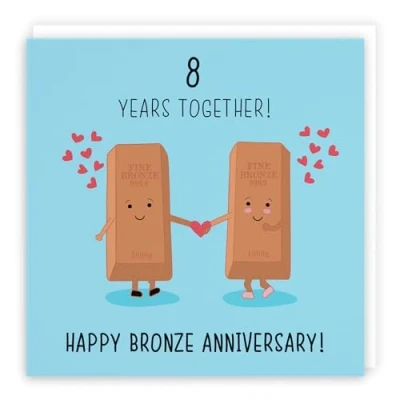 Hunts England ⭐️ - Large 8th Wedding Anniversary Card - Large Size - Bronze Anniversary - Iconic Collection - Large - 210 x 210 mm - 8 Years Cute Anniversary Card For Him, Her, Couples, etc. LARGE CARD MEASURES 210 x 210 mm 🌟 - The greetings card is printed on medium-weight paper stock. The card comes with an envelope LEFT BLANK INSIDE 💫 - The greetings card is left blank inside for your own special message RESPONSIBLY SOURCED PAPER STOCK 🌳 - The greetings card is printed on responsibly sourced paper stock giving you peace of mind that the card has been made with the sustainability of our precious forests in mind BY HUNTS ENGLAND 🇬🇧 - This large card is by the independent publisher Hunts England who specialise in greetings cards and gift wrap
