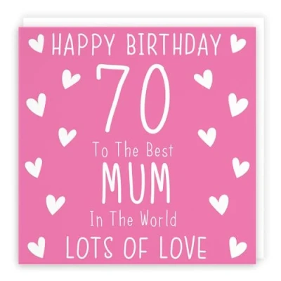 Hunts England ⭐️ - Mum 70th Birthday Card - Happy Birthday - 70 - To The Best Mum In The World - Lots Of Love - Iconic Collection CARD MEASURES 148 x 148 mm 🌟 - The greetings card is printed on medium-weight paper stock. The card comes with an envelope which measures 155 x 155 mm in size LEFT BLANK INSIDE 💫 - The greetings card is left blank inside for your own special message RESPONSIBLY SOURCED PAPER STOCK 🌳 - The greetings card is printed on responsibly sourced paper stock giving you peace of mind that the card has been made with the sustainability of our precious forests in mind BY HUNTS ENGLAND 🇬🇧 - This card is by the independent publisher Hunts England who specialise in greetings cards and gift wrap