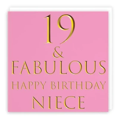 Hunts England ⭐️ - Niece 19th Birthday Card - 19 & Fabulous - Happy Birthday Niece - Still Totally Fabulous Collection (please note that the gold colour is printed effect, it is not foil) CARD MEASURES 148 x 148 mm 🌟 - The greetings card is printed on medium-weight paper stock. The card comes with an envelope which measures 155 x 155 mm in size LEFT BLANK INSIDE 💫 - The greetings card is left blank inside for your own special message RESPONSIBLY SOURCED PAPER STOCK 🌳 - The greetings card is printed on responsibly sourced paper stock giving you peace of mind that the card has been made with the sustainability of our precious forests in mind BY HUNTS ENGLAND 🇬🇧 - This card is by the independent publisher Hunts England who specialise in greetings cards and gift wrap