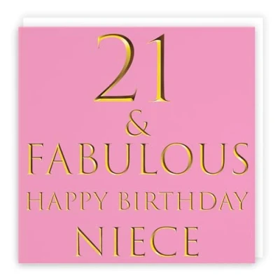 Hunts England ⭐️ - Niece 21st Birthday Card - 21 & Fabulous - Happy Birthday Niece - Still Totally Fabulous Collection (please note that the gold colour is printed effect, it is not foil) CARD MEASURES 148 x 148 mm 🌟 - The greetings card is printed on medium-weight paper stock. The card comes with an envelope which measures 155 x 155 mm in size LEFT BLANK INSIDE 💫 - The greetings card is left blank inside for your own special message RESPONSIBLY SOURCED PAPER STOCK 🌳 - The greetings card is printed on responsibly sourced paper stock giving you peace of mind that the card has been made with the sustainability of our precious forests in mind BY HUNTS ENGLAND 🇬🇧 - This card is by the independent publisher Hunts England who specialise in greetings cards and gift wrap