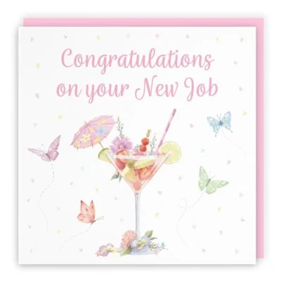 Hunts England Pink Cocktail And Butterflies Elegant New Job Congratulations Card Milo's Gallery Female For Women, Her