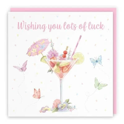 Hunts England Pink Cocktail And Butterflies Good Luck Card For Her Milo's Gallery Female Exams, Driving Test, New Job, Travelling, Moving, etc.