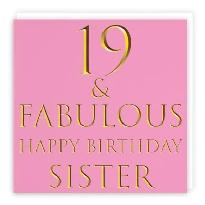 Hunts England ⭐️ - Sister 19th Birthday Card - 19 & Fabulous - Happy Birthday Sister - Still Totally Fabulous Collection (please note that the gold colour is printed effect, it is not foil) - Fun Female Card CARD MEASURES 148 x 148 mm 🌟 - The greetings card is printed on medium-weight paper stock. The card comes with an envelope which measures 155 x 155 mm in size LEFT BLANK INSIDE 💫 - The greetings card is left blank inside for your own special message RESPONSIBLY SOURCED PAPER STOCK 🌳 - The greetings card is printed on responsibly sourced paper stock giving you peace of mind that the card has been made with the sustainability of our precious forests in mind BY HUNTS ENGLAND 🇬🇧 - This card is by the independent publisher Hunts England who specialise in greetings cards and gift wrap