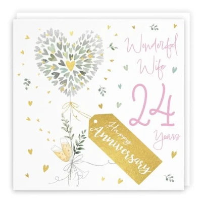Hunts England Wife 24th Anniversary Card 24 Years Contemporary Hearts Gold Foil Luxury Wedding For Happy Milo's Gallery