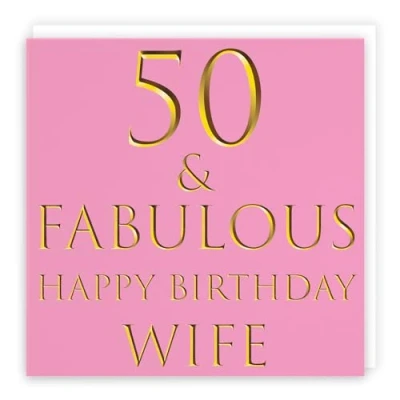 Hunts England ⭐️ - Wife 50th Birthday Card - 50 & Fabulous - Happy Birthday Wife Still Totally Fabulous Collection (please note that the gold colour is printed effect, it is not foil) - Fun Birthday Card CARD MEASURES 148 x 148 mm 🌟 - The greetings card is printed on medium-weight paper stock. The card comes with an envelope which measures 155 x 155 mm in size LEFT BLANK INSIDE 💫 - The greetings card is left blank inside for your own special message RESPONSIBLY SOURCED PAPER STOCK 🌳 - The greetings card is printed on responsibly sourced paper stock giving you peace of mind that the card has been made with the sustainability of our precious forests in mind BY HUNTS ENGLAND 🇬🇧 - This card is by the independent publisher Hunts England who specialise in greetings cards and gift wrap
