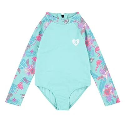 Hurley Girl's Hrlg Ruffle Long Sleeve One Piece Swimsuit, Aurora Green, 2 Years
