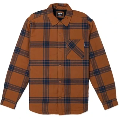Ultra-soft 100% cotton flannel exterior with sherpa lined body and taffeta sleeves Front placket and cuffs with snap closure Patch pocket on left chest and hand pockets at side seams Pleats at back yoke Scalloped hem