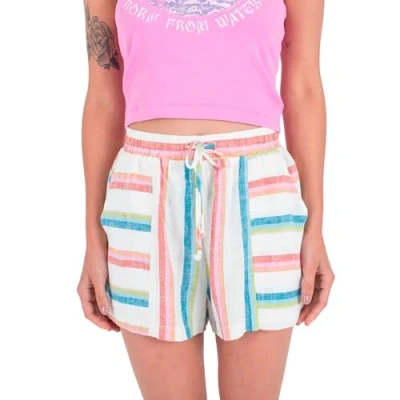 Pull on short with elasticated waistband Self ties Front and back seam detail 2 1/2" inseam Hurley metal badge at center back