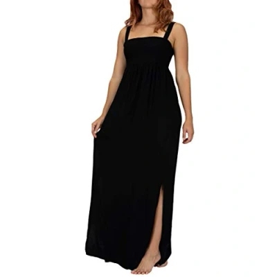 Standard fit 100% rayon Maxi dress with smocked top bodice and slit on wearers left seam Icon twill label